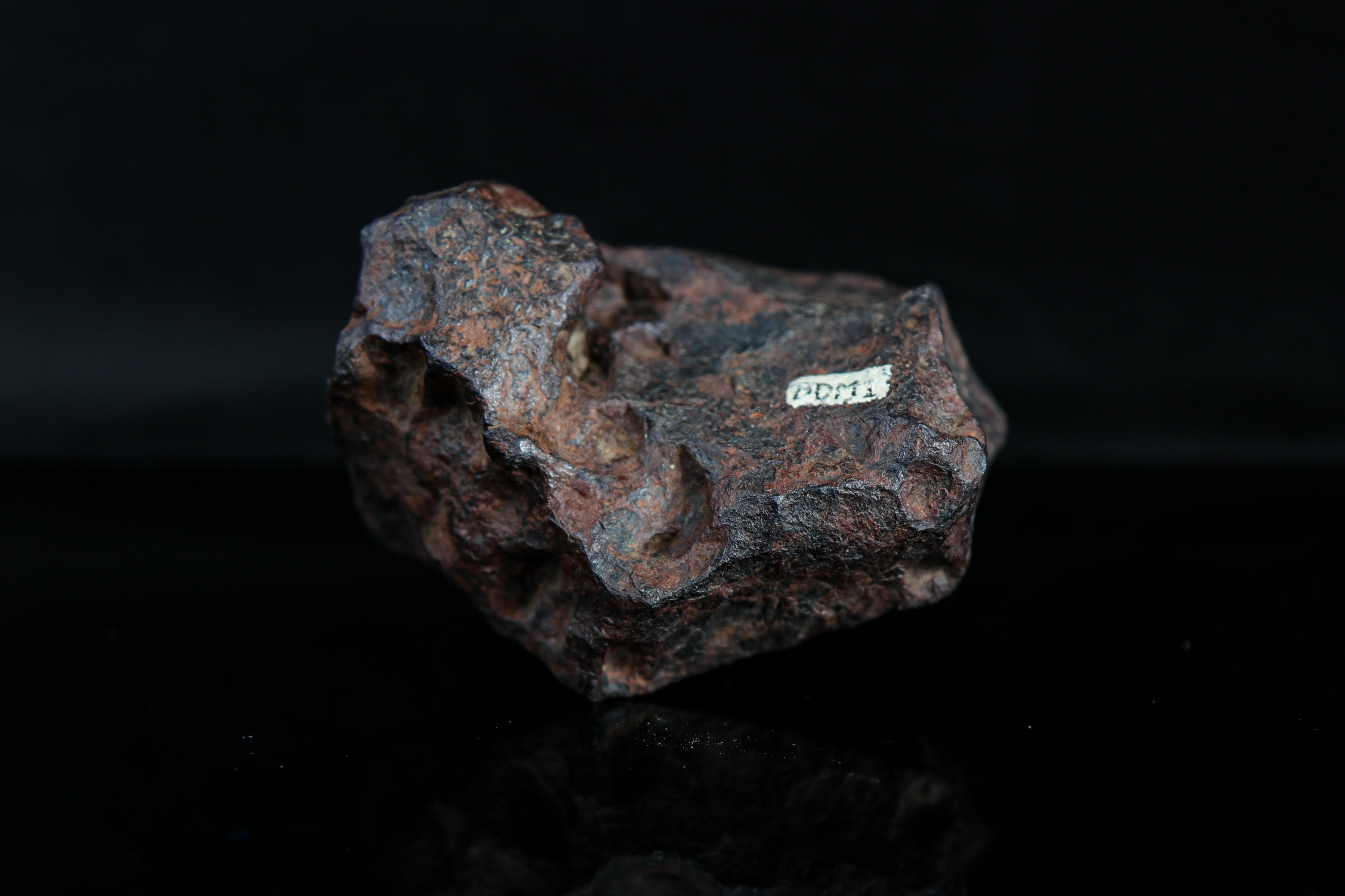 On the meteorite, you'll find the label "BDM1", signifying its place in the collection of the late Bruce Dod. Among Dod's notable achievements is his pioneering work on iron meteorites, relics of the solar system's earliest epochs. Through detailed examination, Dod decoded the complex histories encoded within these metallic specimens, revealing pivotal information about the conditions prevailing during the nascent stages of planetary formation. His findings have not only enriched our understanding of meteoritics but also provided critical data for refining models of solar system dynamics.