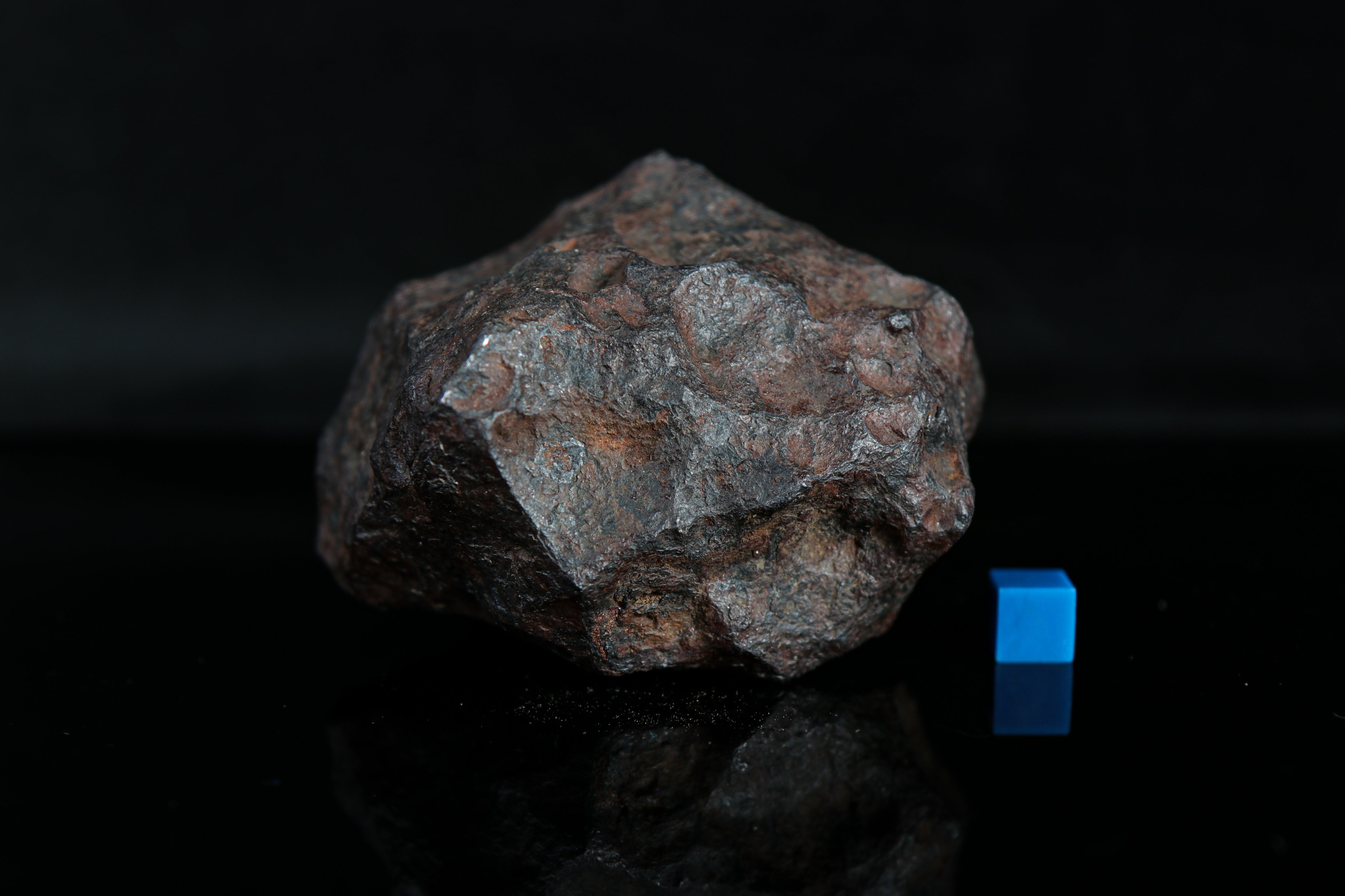 This individual is 1300 grams (2.86 lb), and features a rounded shape with regmaglypts and a quintessential meteoritic shape.