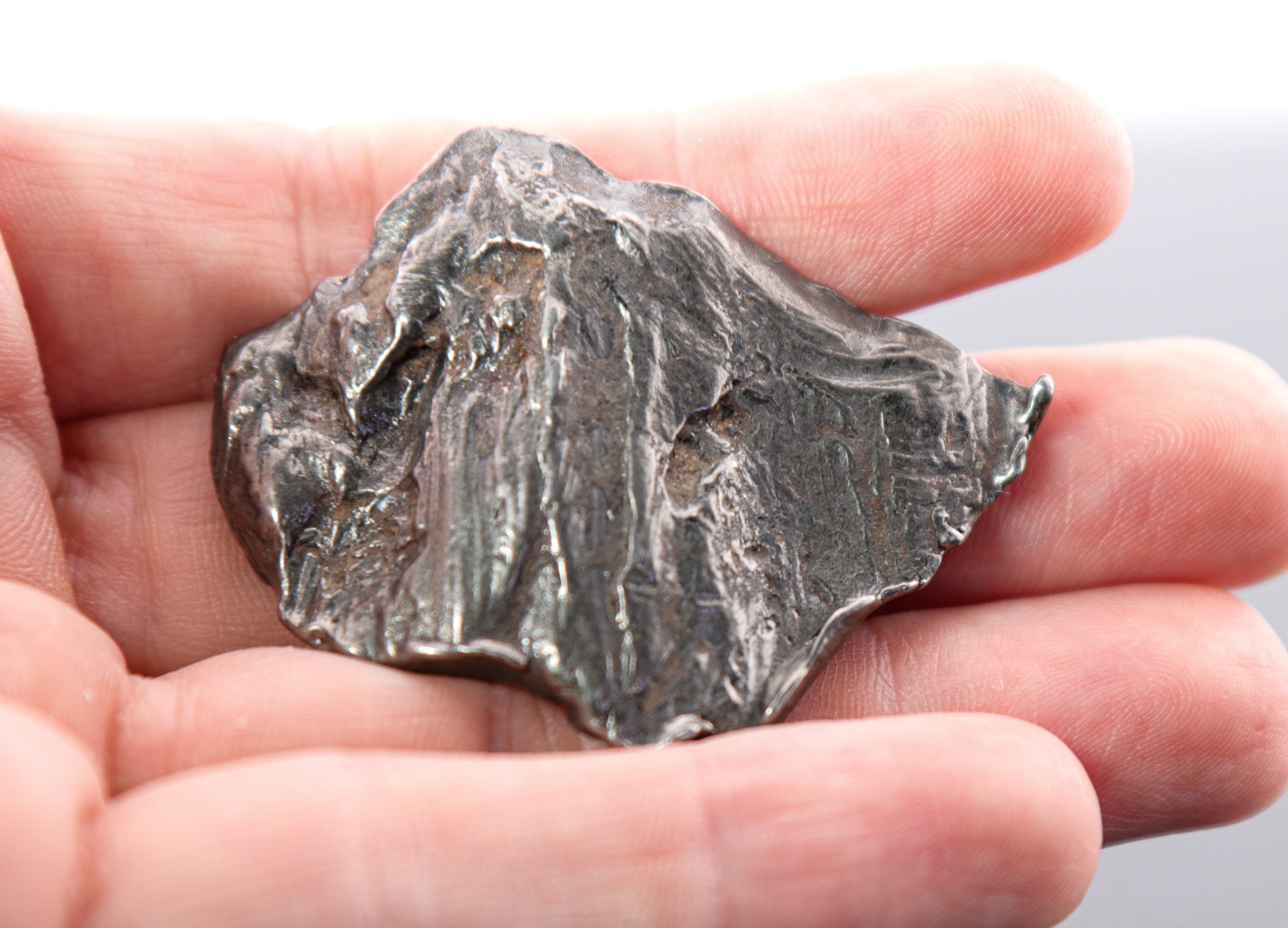Jagged, fragmented pieces of an iron meteorite that were violently torn apart during atmospheric entry or impact with the Earth. These shards often have sharp edges, twisted shapes, and a rough texture, showcasing the immense forces they endured. Unlike whole iron meteorites, shrapnel pieces are typically irregular in form and may display fusion crust, heat-altered surfaces, or stress fractures from their explosive breakup.