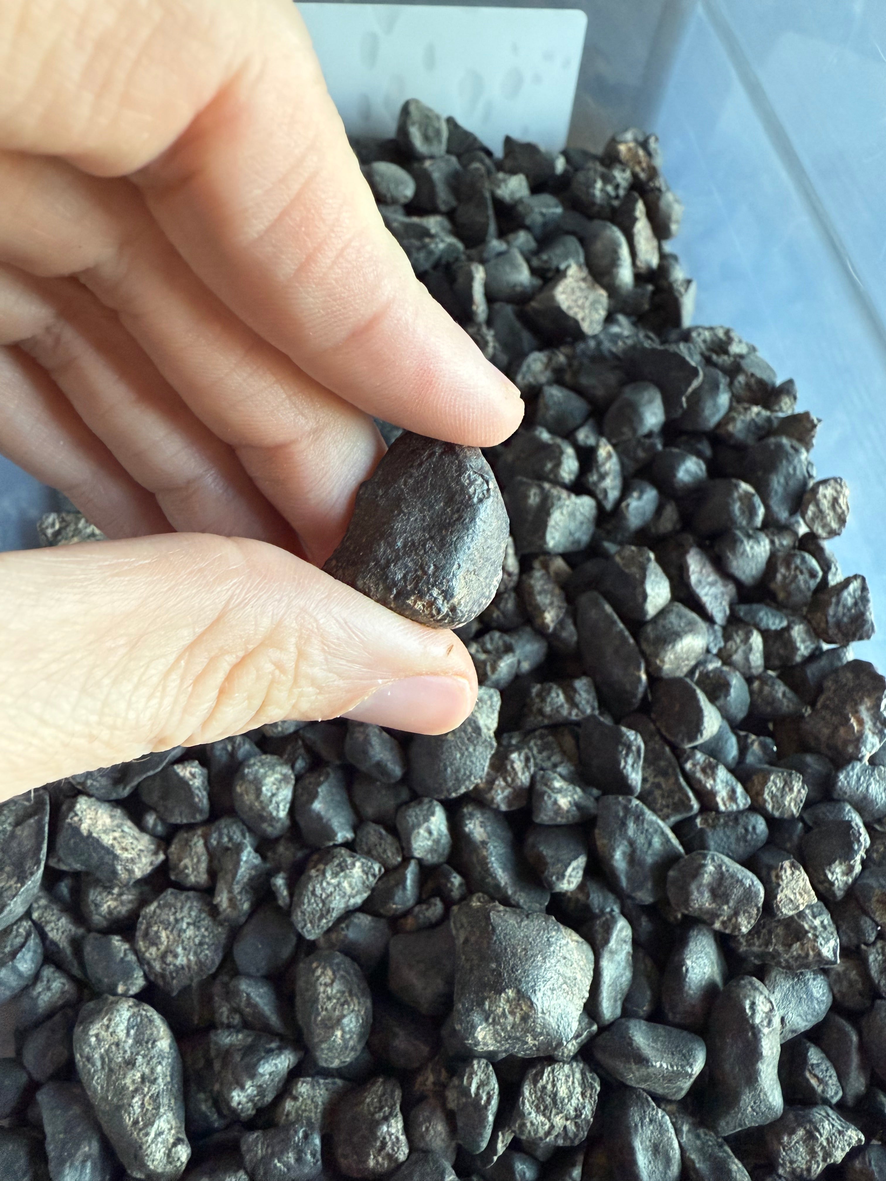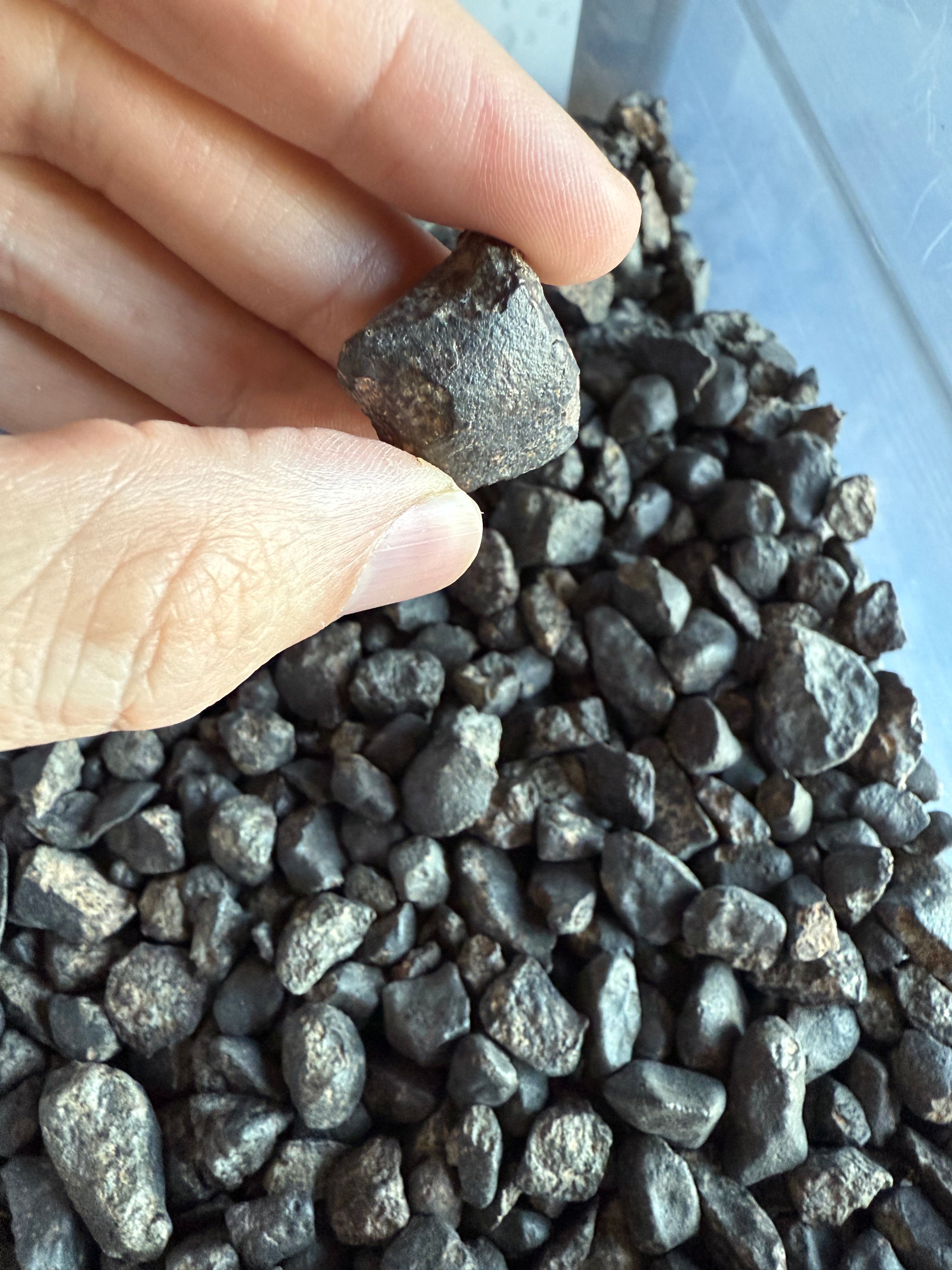 * The images in the photographs provide a representative sample of the stone you can expect in your meteorite box, but your specific stone may not be shown in the picture. Each one is different, and they all have unique features that make them special. I hand-select every stone and only send the ones that I would be thrilled to receive and display.