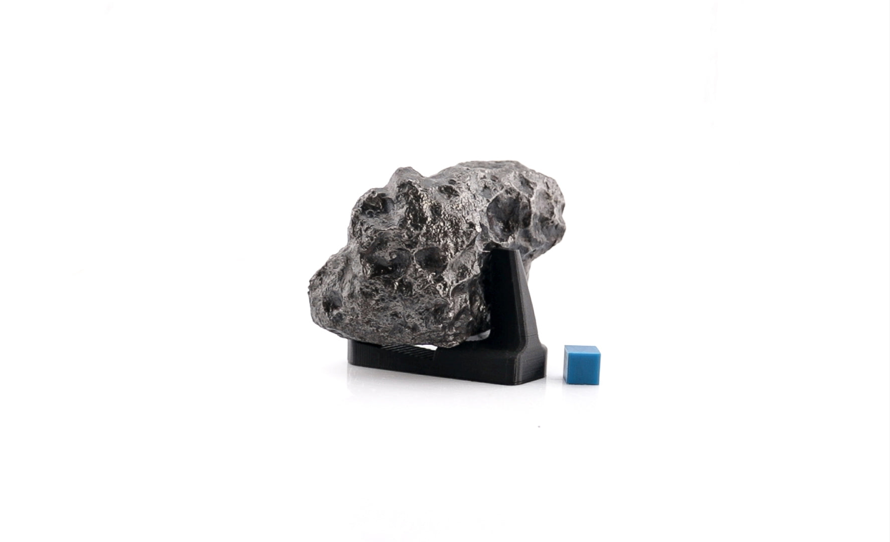 It features wide feet to support your meteorite, a back prong to rest it against, and a ridged bottom to prevent it from sliding. We have multiple sizes available to support diverse meteorite types and shapes (sizes shown in mm):